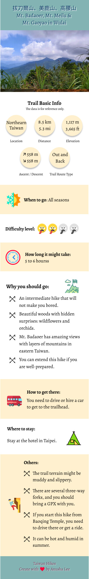 Mt. Meilu, Mt. Gaoyao and Mt. Badaoer: A Hike with Great Views and Wild Orchids in Wulai